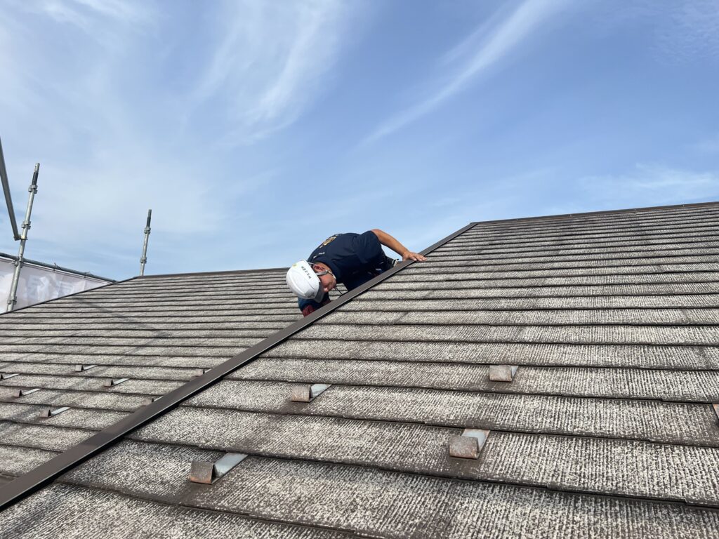 住宅の屋根塗装工事全般を承っております。塗り替えによって防水性や耐久性を高め、屋根材の劣化を防ぎます。遮熱・断熱効果のある塗料を使用することで、室内環境の快適さや省エネ効果も期待できます。